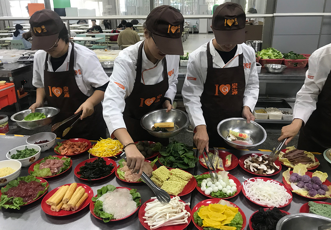 在這丹桂飄香的金秋十月?,泉滿東大香園食堂再次迎來了以“勞動育人”為主題的大學(xué)生第二課堂活動。在東大香園食堂經(jīng)理的安排下,參加活動的學(xué)生們中午如約而至。更衣室換上潔白的廚師服后,跟隨主廚的腳步,井然有序進入后廚。?&nb...